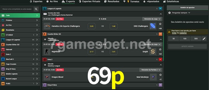 A aposta 69p oferece aos jogadores a experiência mais conveniente de apostas em eSports!